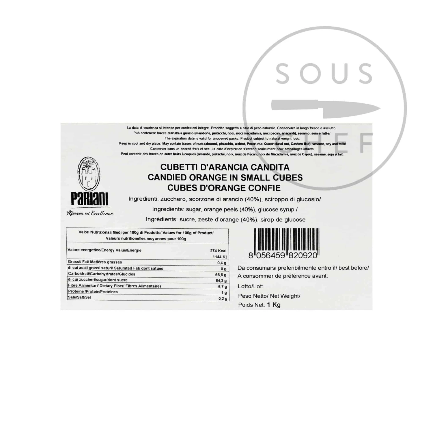 Pariani’s candied orange in small cubes is a sweet, aromatic alternative to fresh fruit when making cakes and ice creams. Pariani’s exceptional cold candying process leaves the natural flavours of the fruit unaltered, and also helps to prevent the fruit freezing at low temperatures – so the orange cubes stay lovely and soft even in ice cream.