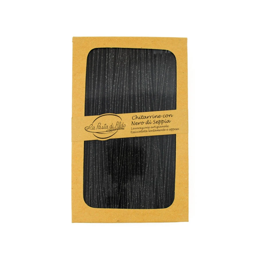 Use Pasta di Aldo cuttlefish ink chitarrine egg pasta to make a stunning seafood pasta dish. The cuttlefish ink lends a subtle ‘ocean’ flavour to the pasta, which pairs wonderfully with scallops, prawns and crab. The black colour of the pasta makes a striking contrast to white fish and seafood.