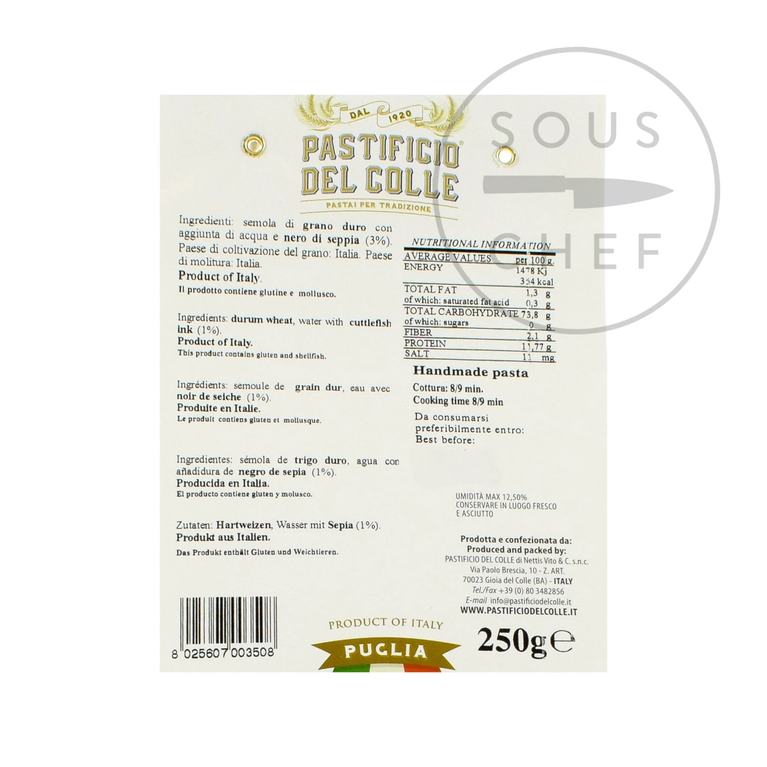 Ingredients: Durum wheat semolina, water, cuttlefish ink (1%)