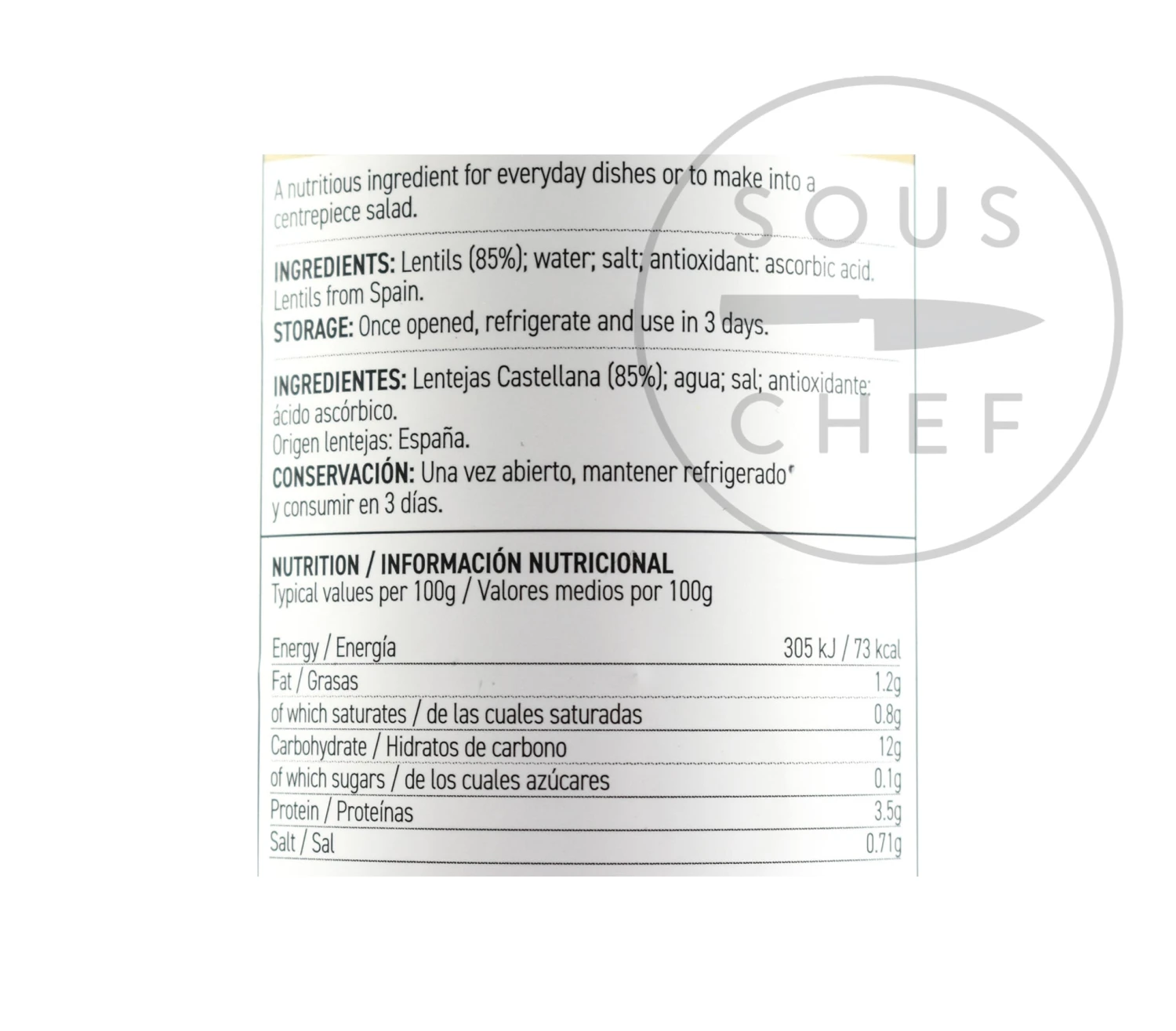 These pre-cooked Spanish lentils still have a little bite to them. Serve on the side of slow-cooked lamb, roast chicken, or enjoy as a salad tossed with vinaigrette and peppery green leaves.
