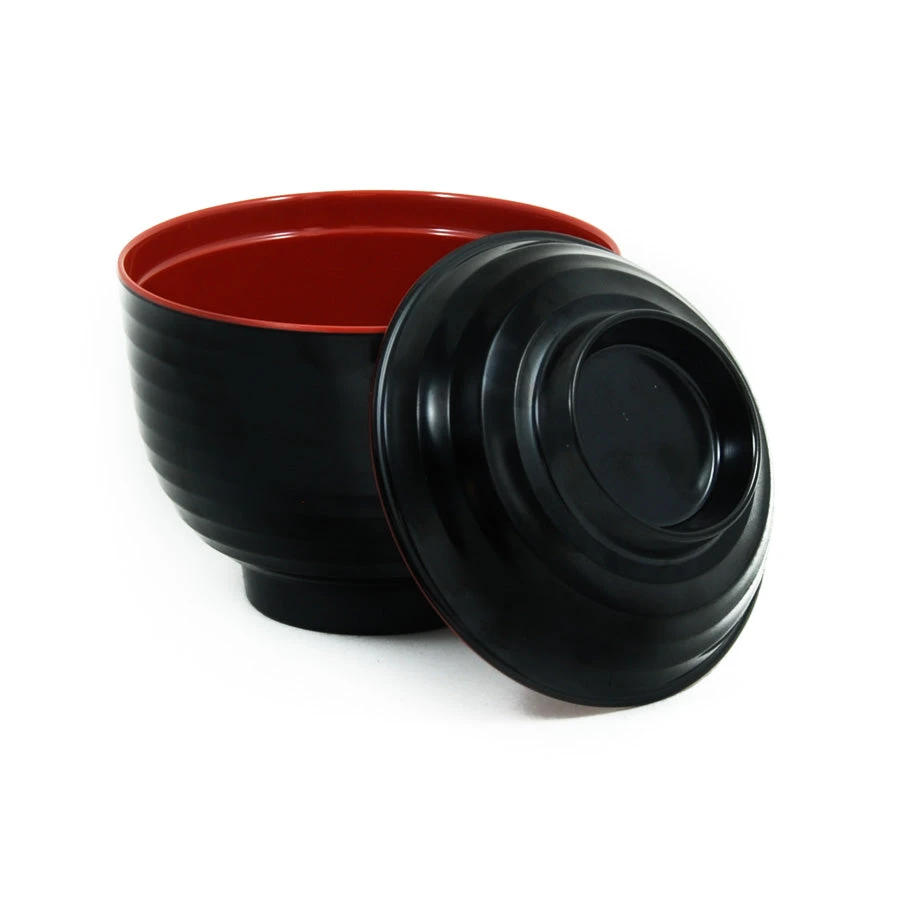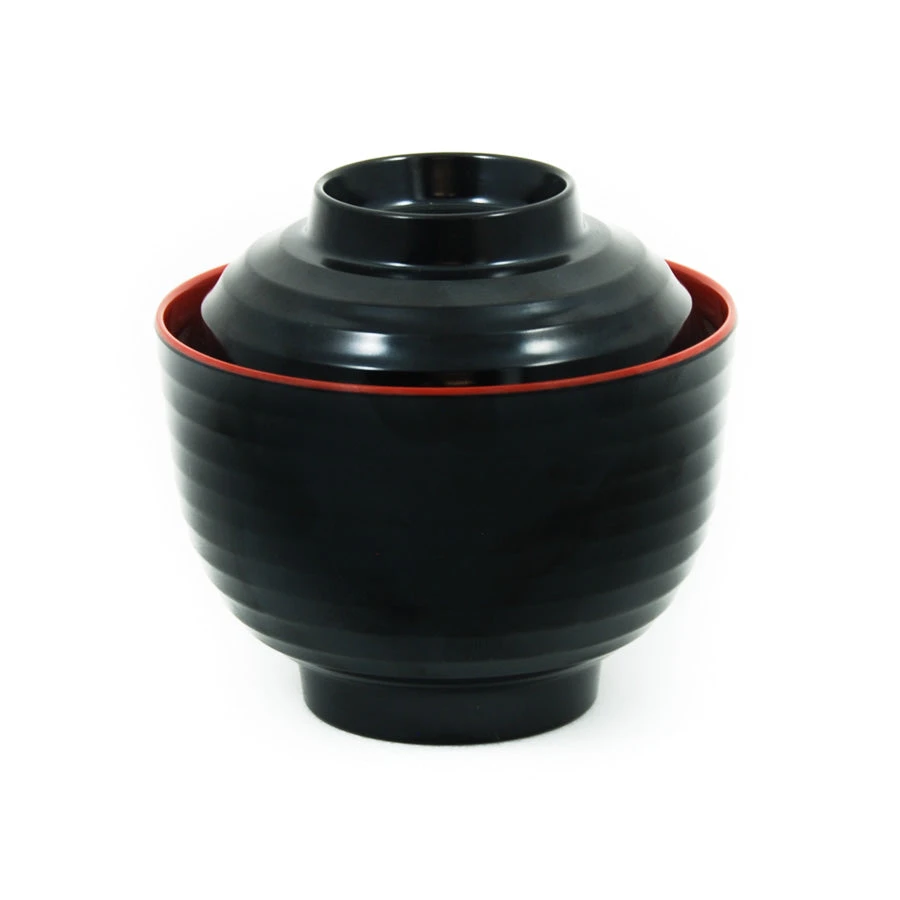 The melamine red & black miso soup bowl is the same as you’d find in Japanese restaurants. Serve a warming bowl of miso soup before a meal – the lid keeps it warm on the way to the table, and turn into a sauce dish when turned upside down.