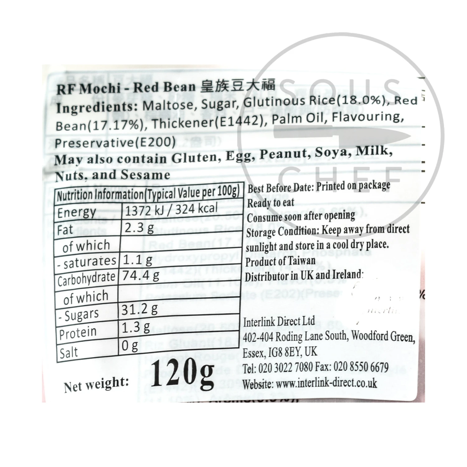 Ingredients: Maltose, sugar, glutinous rice (18%), red bean (17.17%), thickener (E1442), palm oil, flavouring, preservative (E200)
