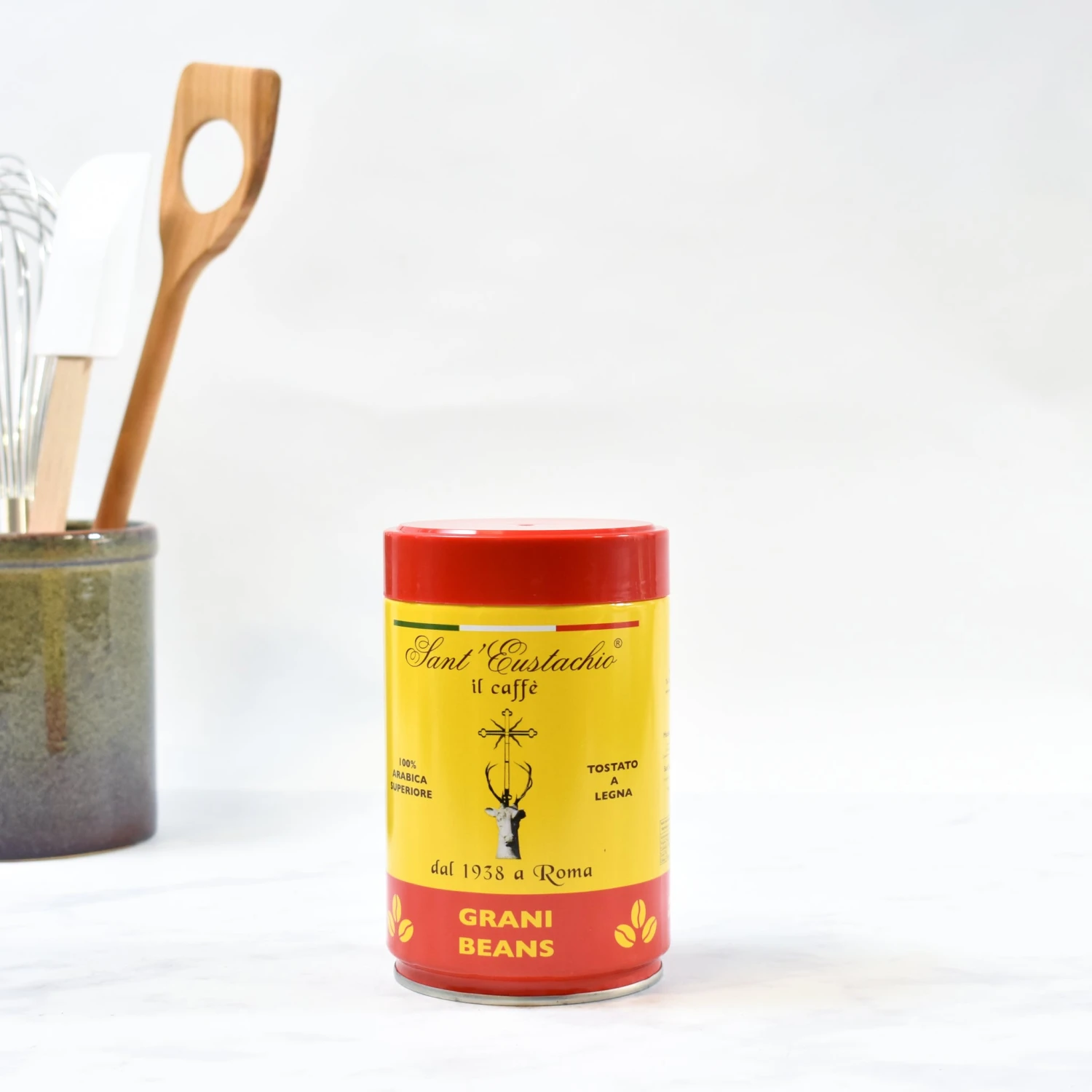 Sant’Eustachio coffee blend beans are a must for true coffee connoisseurs. This secret blend of 100% Arabica, wood roasted coffee beans is particularly desirable for making the perfect Italian espresso or cappuccino. For the best, freshest tasting coffee every time, only grind as many coffee beans as you need per serving.