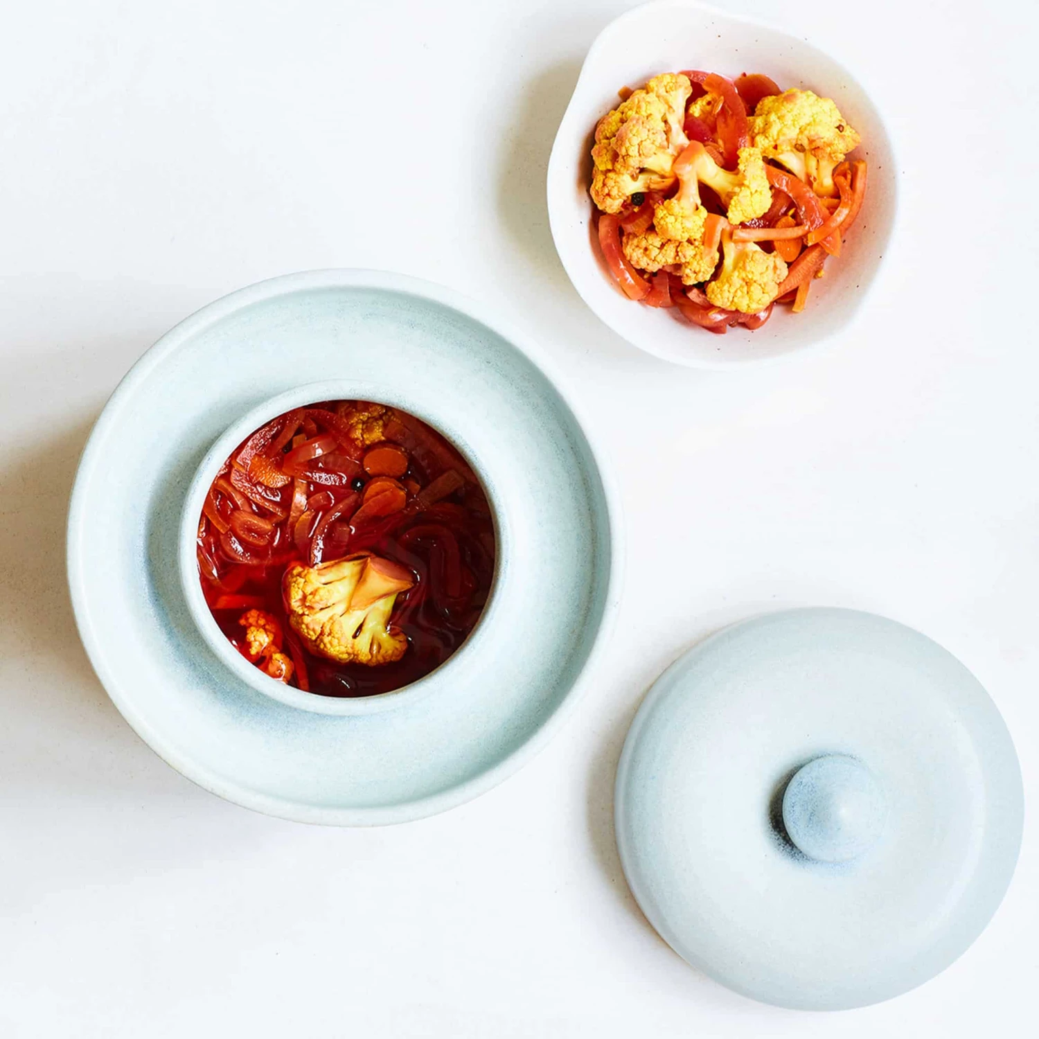 Use this handmade stoneware fermenting crock to make zingy pickles and punchy kimchi at home. In a dusty pale blue shade, this crock is a stunning piece of kitchen equipment that can be used time and time again.