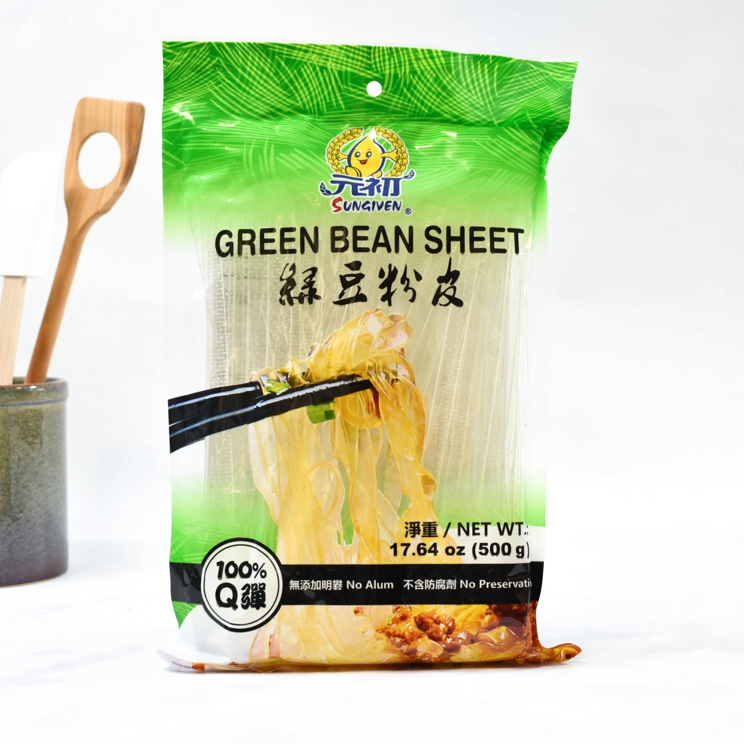 Mung bean starch sheets, also known as cellophane noodles, add texture to Chinese hot pots. The see-through ribbons are also used in cold salads, or simply as an alternative to egg or wheat noodles with stir-fries.