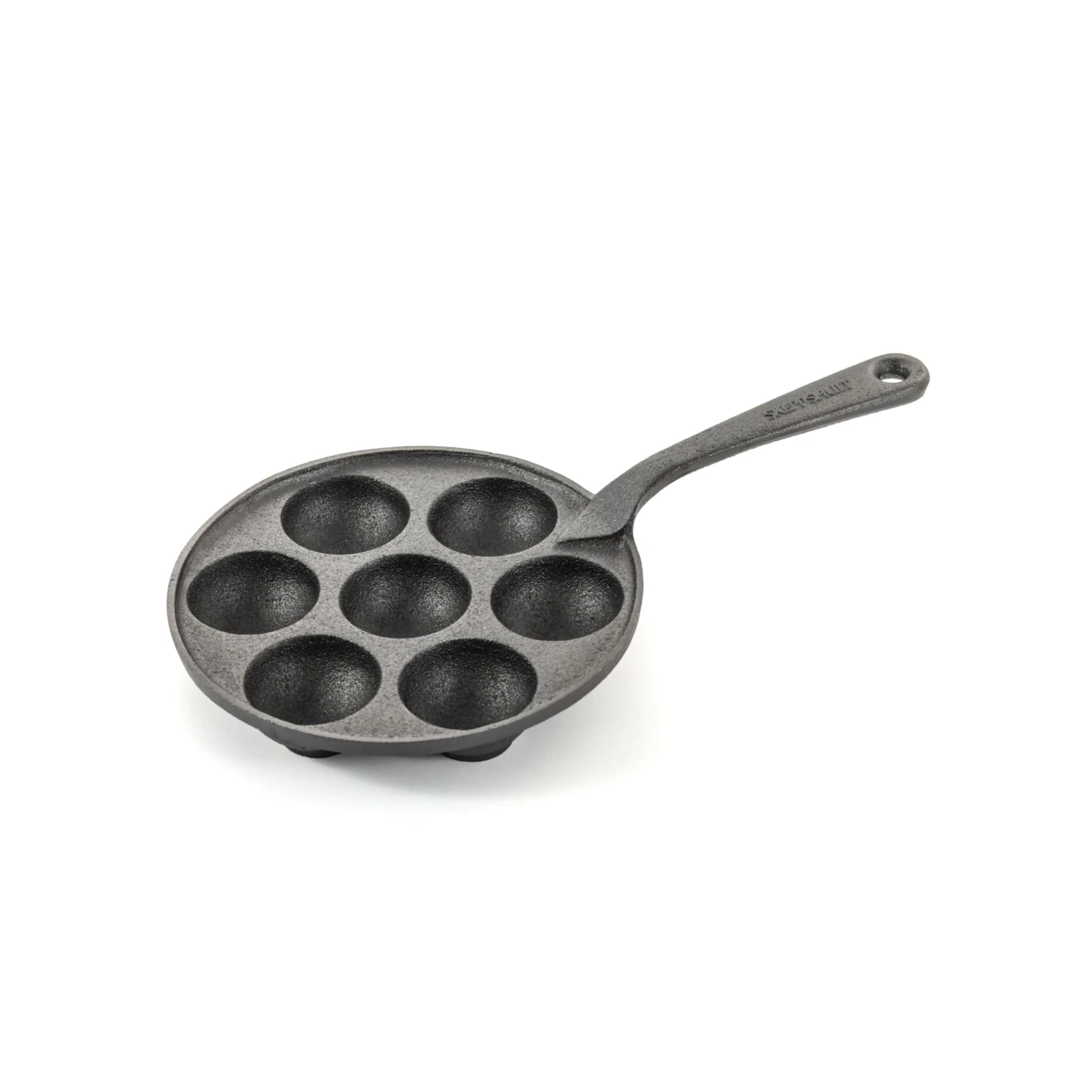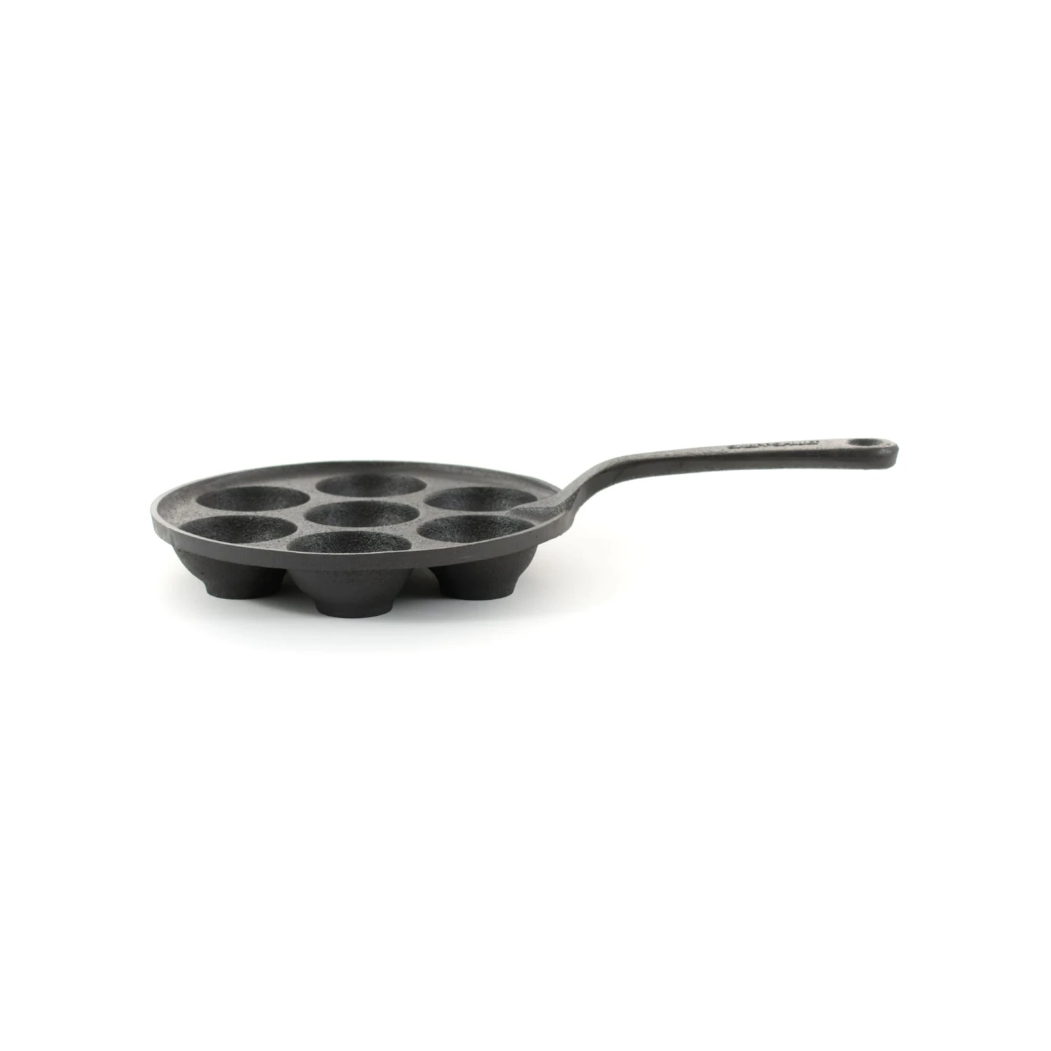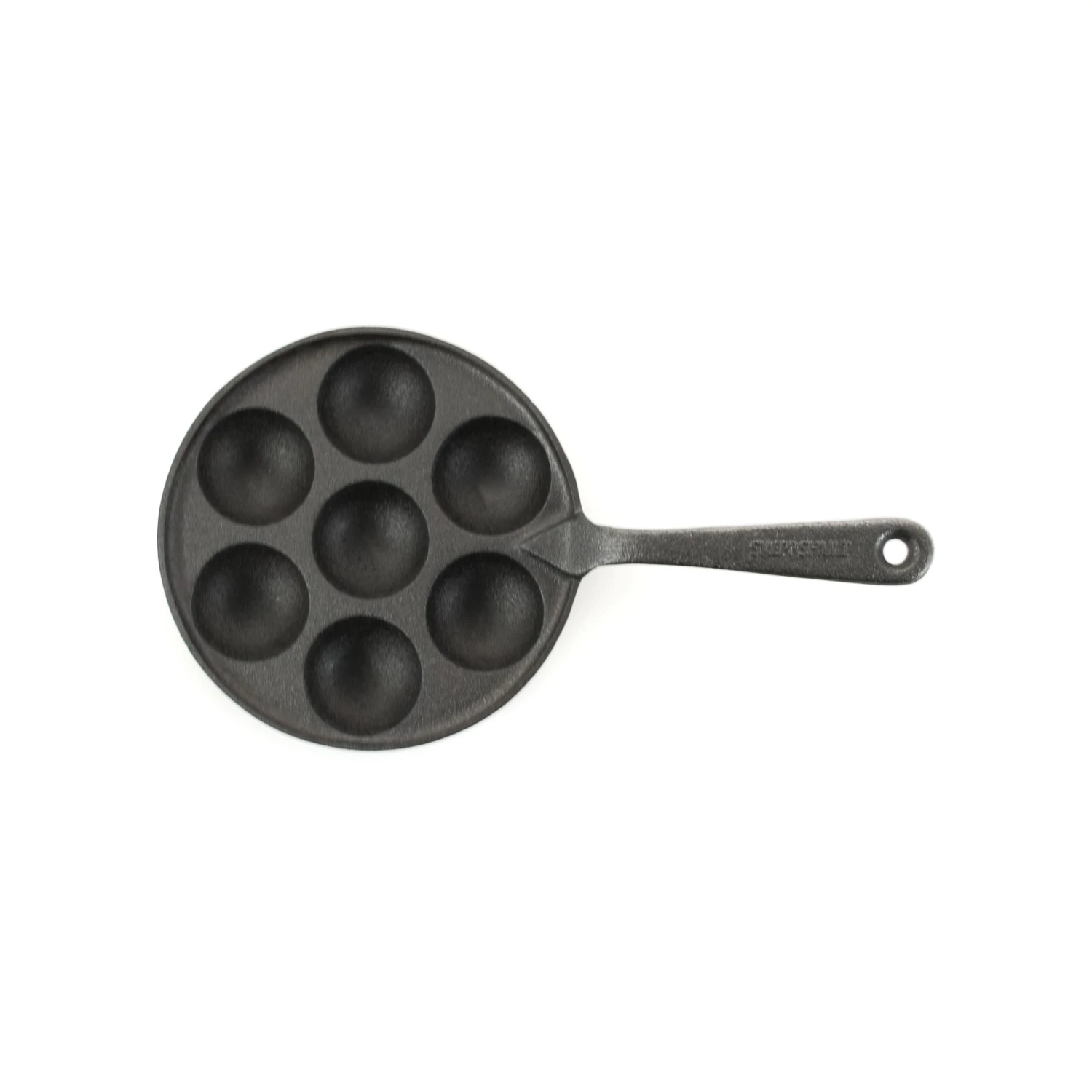 Use the traditional cast iron dumpling pan from Skeppshult to make stovetop bakes. The pan is perfect for making Danish ‘Æbleskiver’ – spherical sweet buns, traditionally served with jam. The dumplings are similar to American popovers, and are made with a batter which is flipped once it has browned on one side and puffed up.