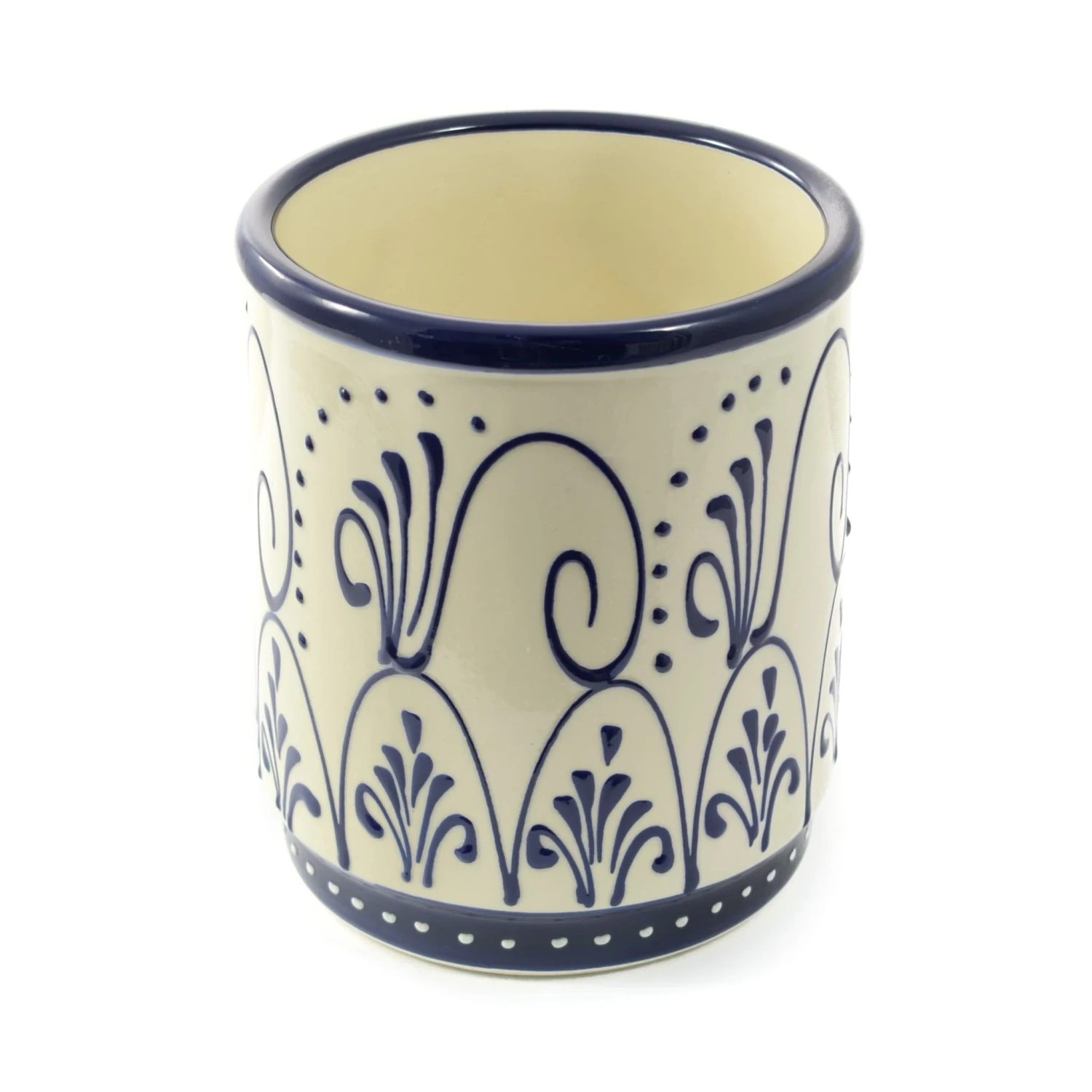 This stylish Andalucia utensil holder is a smart addition to any worktop, decorated in textured Spanish blue and white glaze. Use it to store wooden spoons and ladles, and to keep useful tools such a balloon whisks neatly to hand in your kitchen.