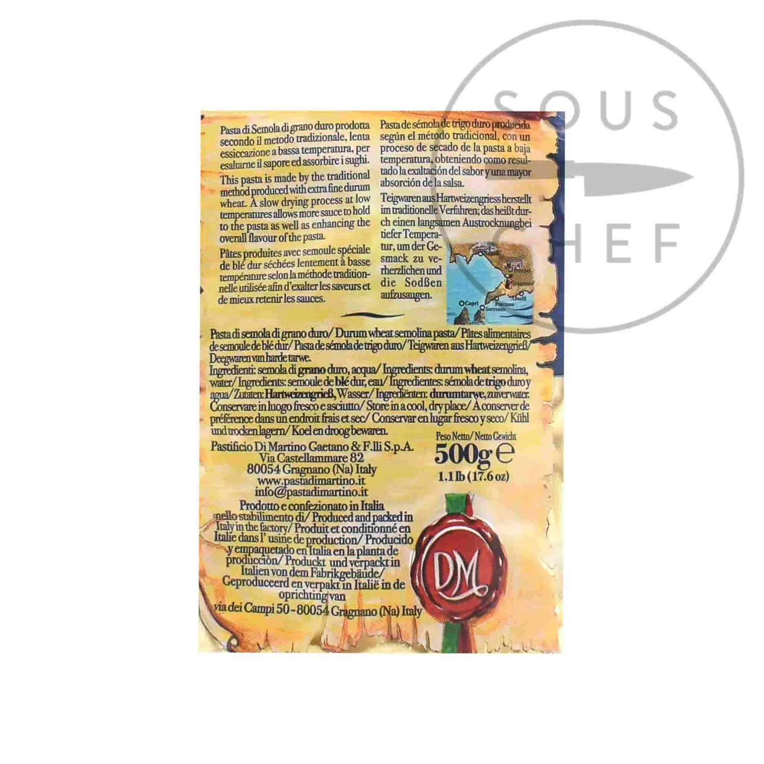 Pastificio Di Martino uses 100% durum wheat semolina, mixed with pure spring water from the Forma river to create the pasta. Each shape is bronze die cut, and dried slowly to retain the starch and protein content – giving it a distinctive pale colour, great firmness and rough texture.Â