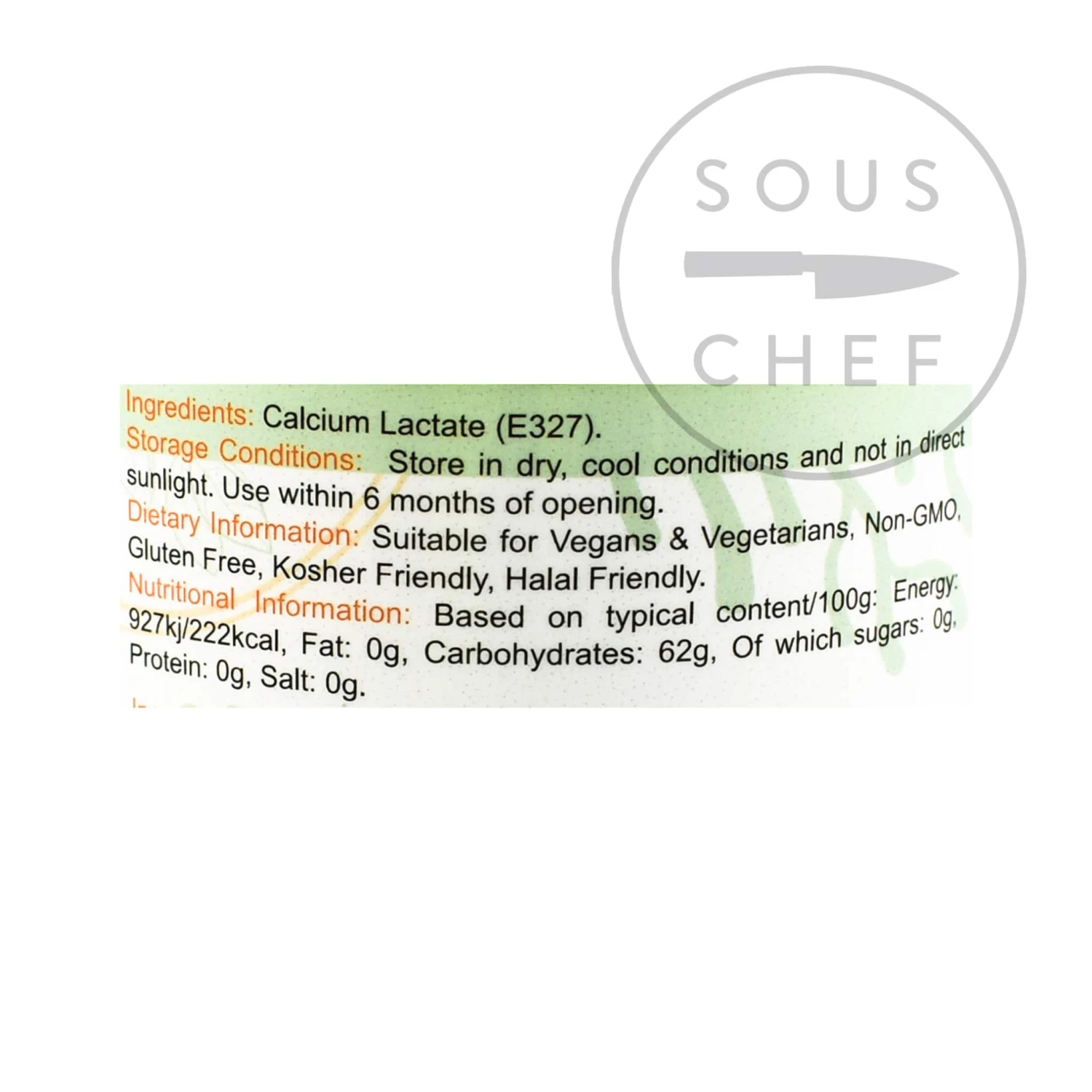 Ingredients: Calcium lactate (E327)