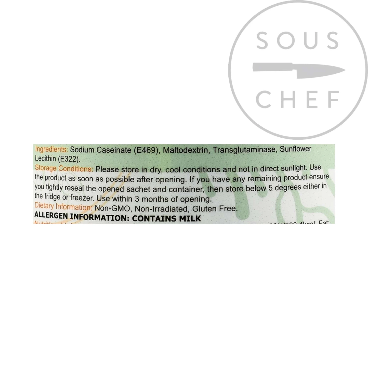 Ingredients: Sodium caseinate (E469), maltodextrin, transglutaminase, sunflower lecithin (E322)