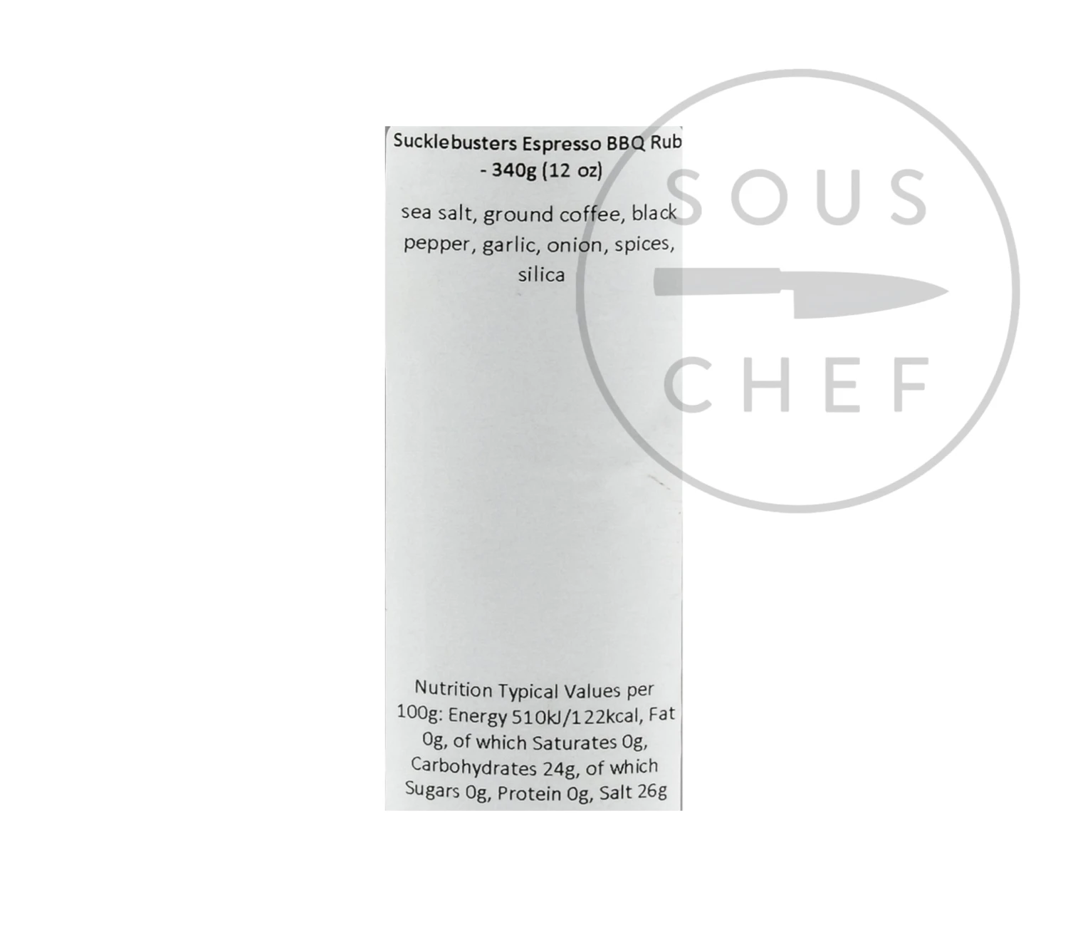 Sucklebusters espresso BBQ rub has the unusual addition of ground coffee – and it really works! The deep earthy flavours go brilliantly with warming black pepper. Use it on seared beef for a dark and powerful BBQ crust. The coffee is freshly ground for each batch of the spice mix, so you get maximum flavour from your rub.