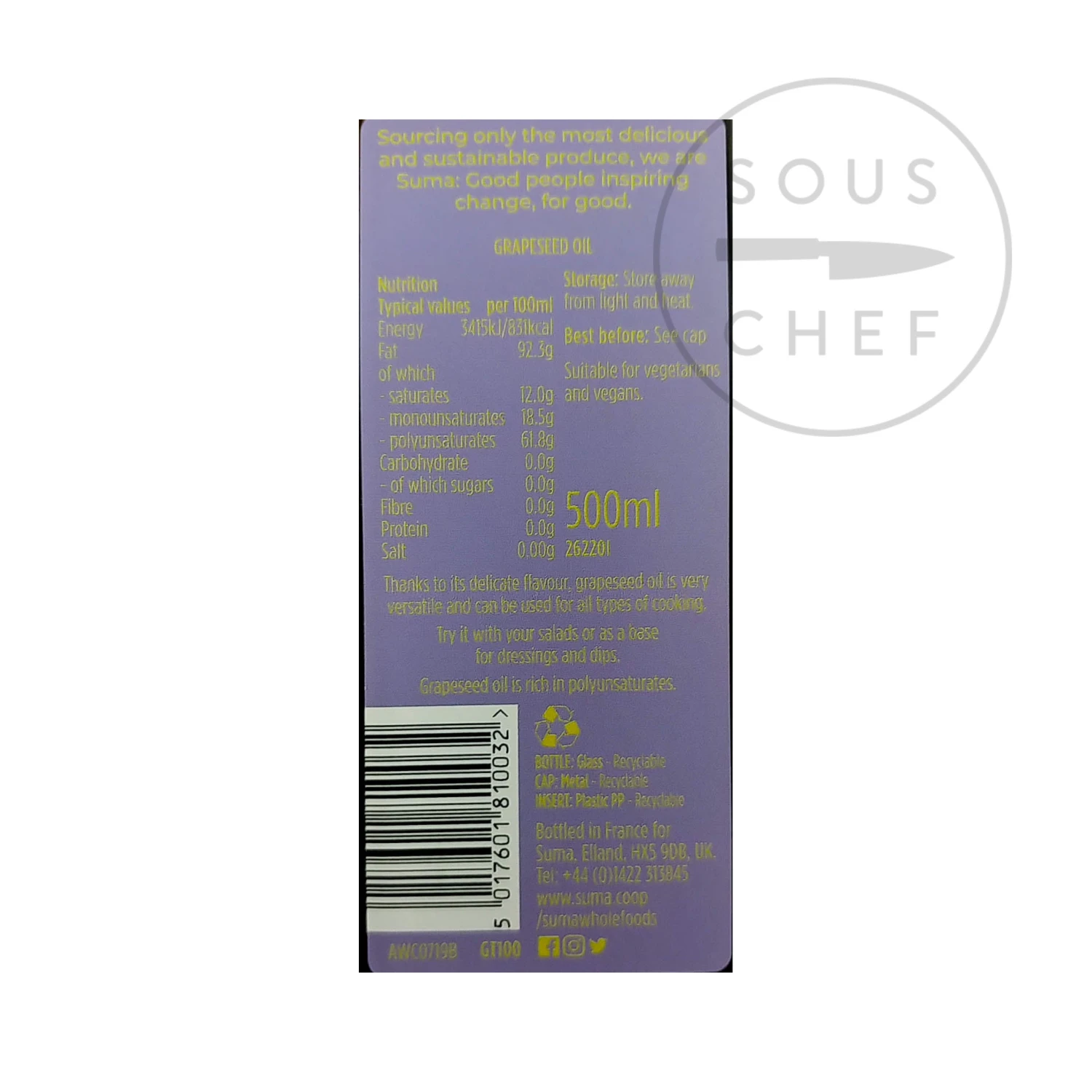 Ingredients: grapeseed oil.Â