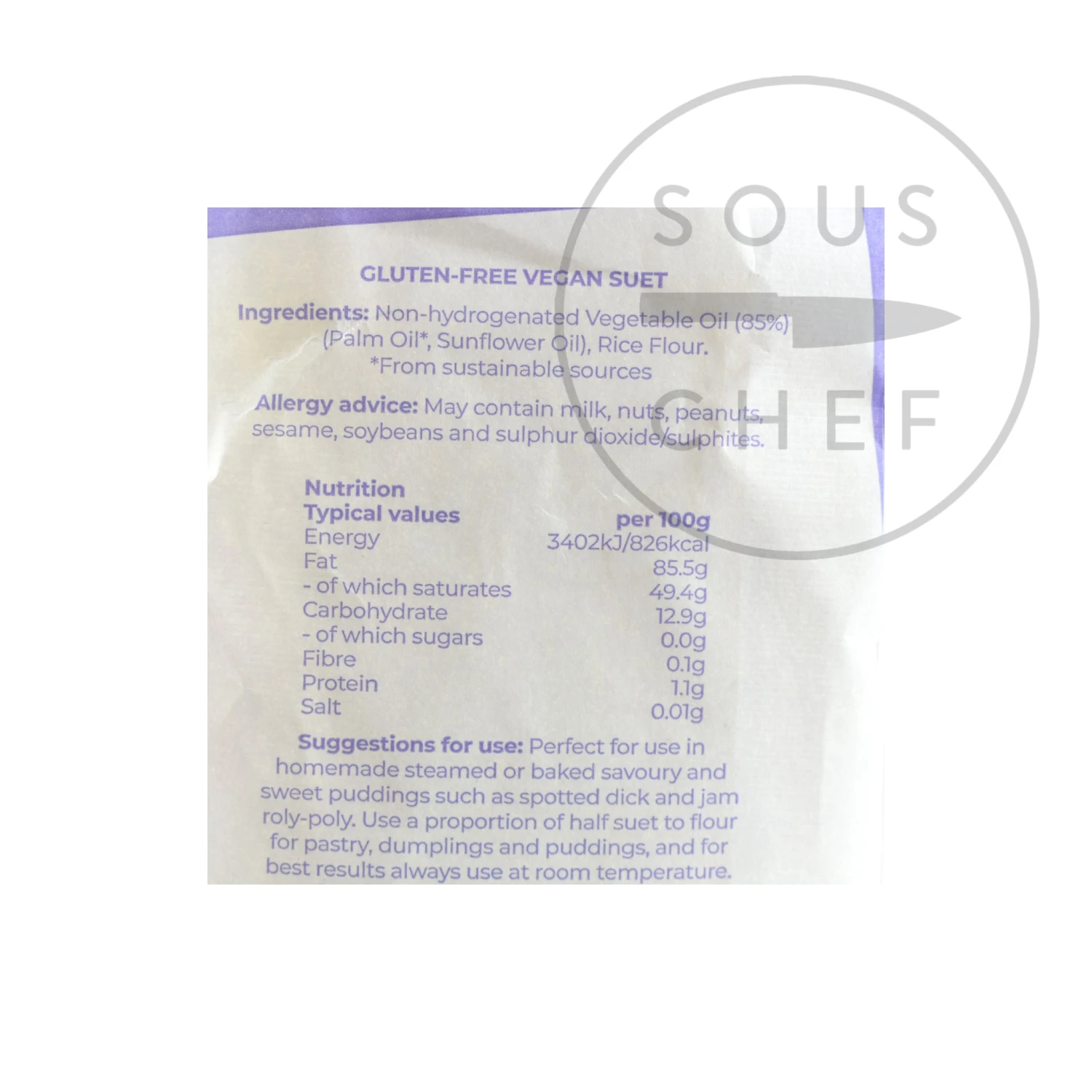 Vegetarian suet is ideal for making vegetarian dumplings, pastries and puddings. It contains only vegetable oils, so it’s vegetarian and vegan-friendly, too. Use vegetarian suet to make classic British puddings, like jam roly poly or spotted dick.