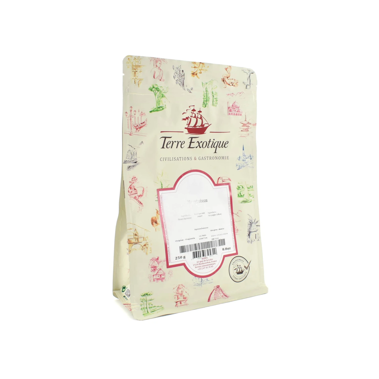 This 250g bag is ideal for catering purposes and professional kitchens – the bird’s eye chilli pepper comes in opaque packaging, protecting it from light and preserving the fresh flavour, while the flat base makes it easy to store.