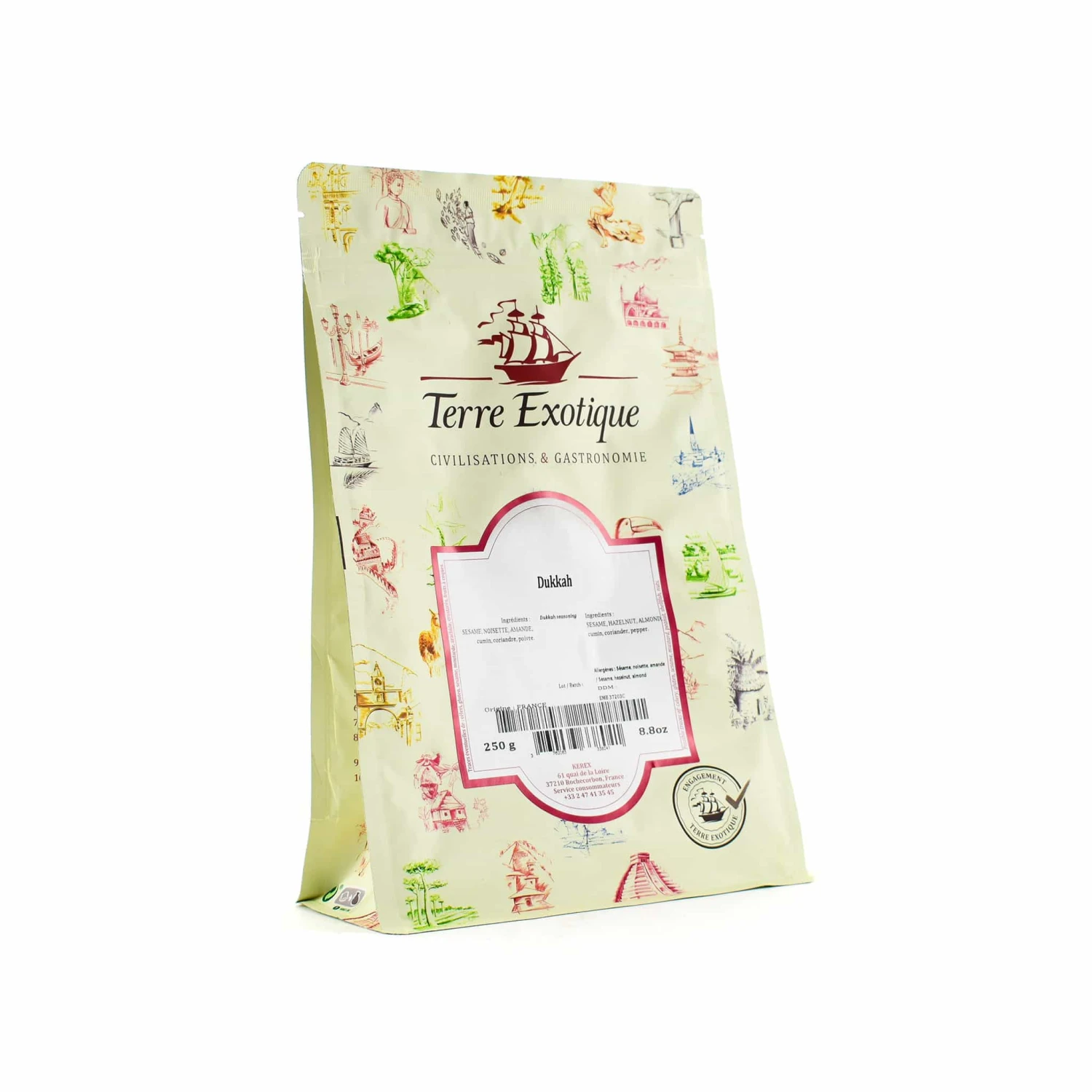 This 250g bag is ideal for home and professional kitchens – the dukkah seasoning comes in opaque packaging, protecting it from light and preserving the fresh flavour, while the flat base makes it easy to store.