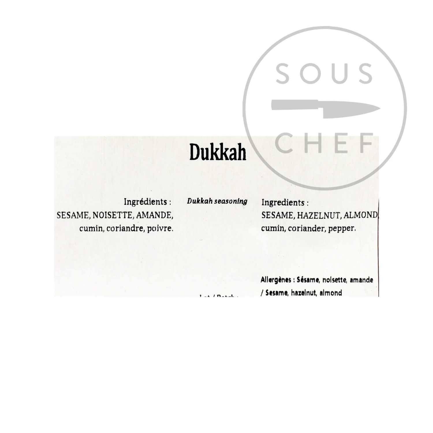 Ingredients: Sesame (non EU), hazelnut, almond, coriander, cumin, pepper, salt, sugar