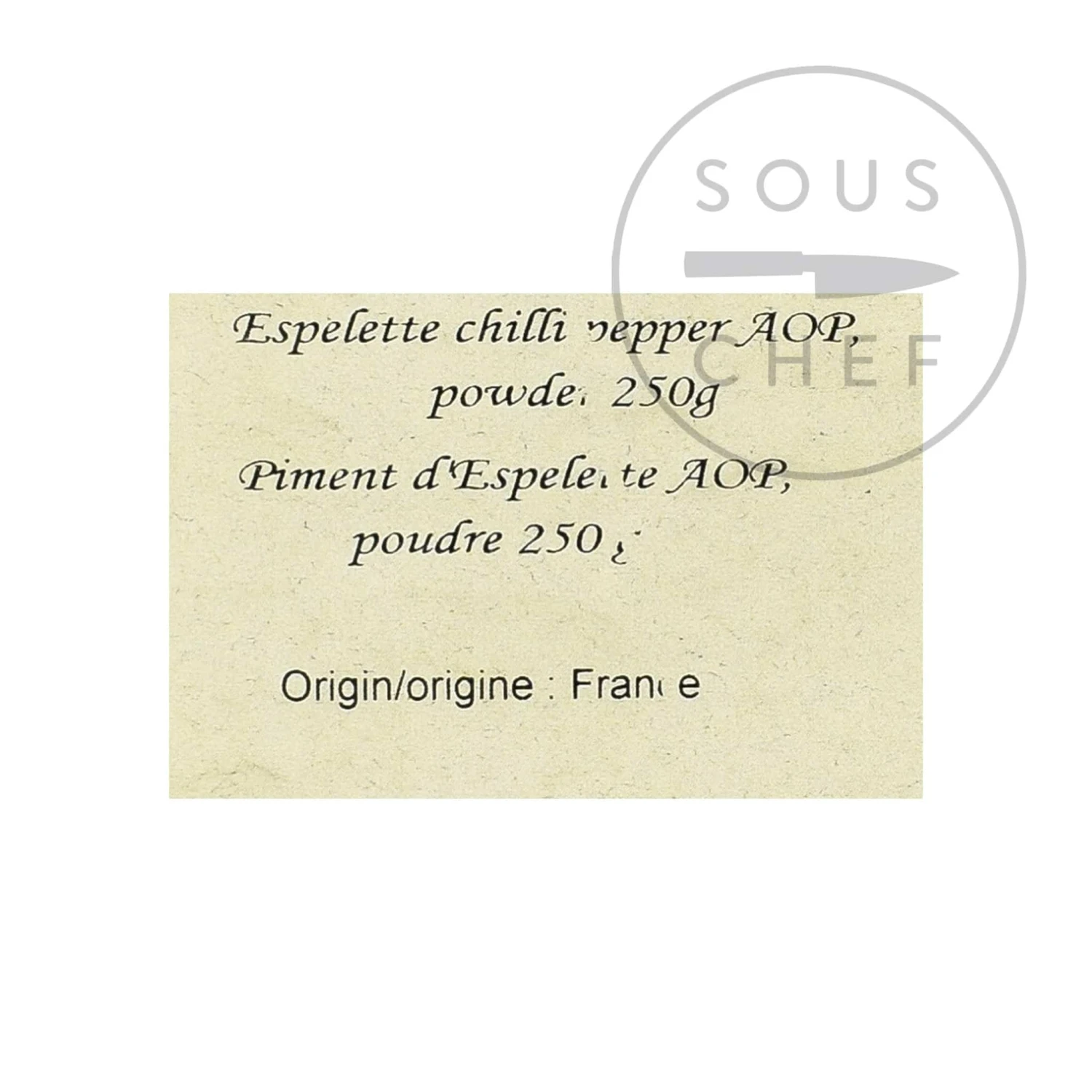 This 250g bag is ideal for home and professional kitchens – the Espelette chilli pepper PDO powder comes in opaque packaging, protecting it from light and preserving the fresh flavour, while the flat base makes it easy to store.