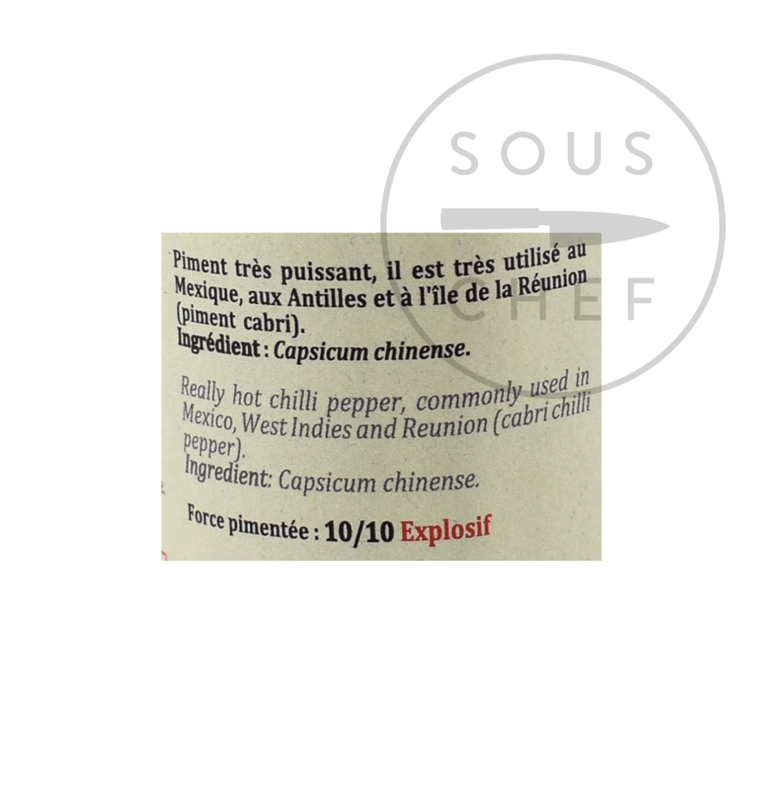 Terre Exotique’s habanero chilli pepper has a volcanic heat and fruity-citrus notes. Originating from Mexico, the habanero chilli pepper is extremely powerful, rating 9/10 on the Scoville scale so should be used sparingly!Â