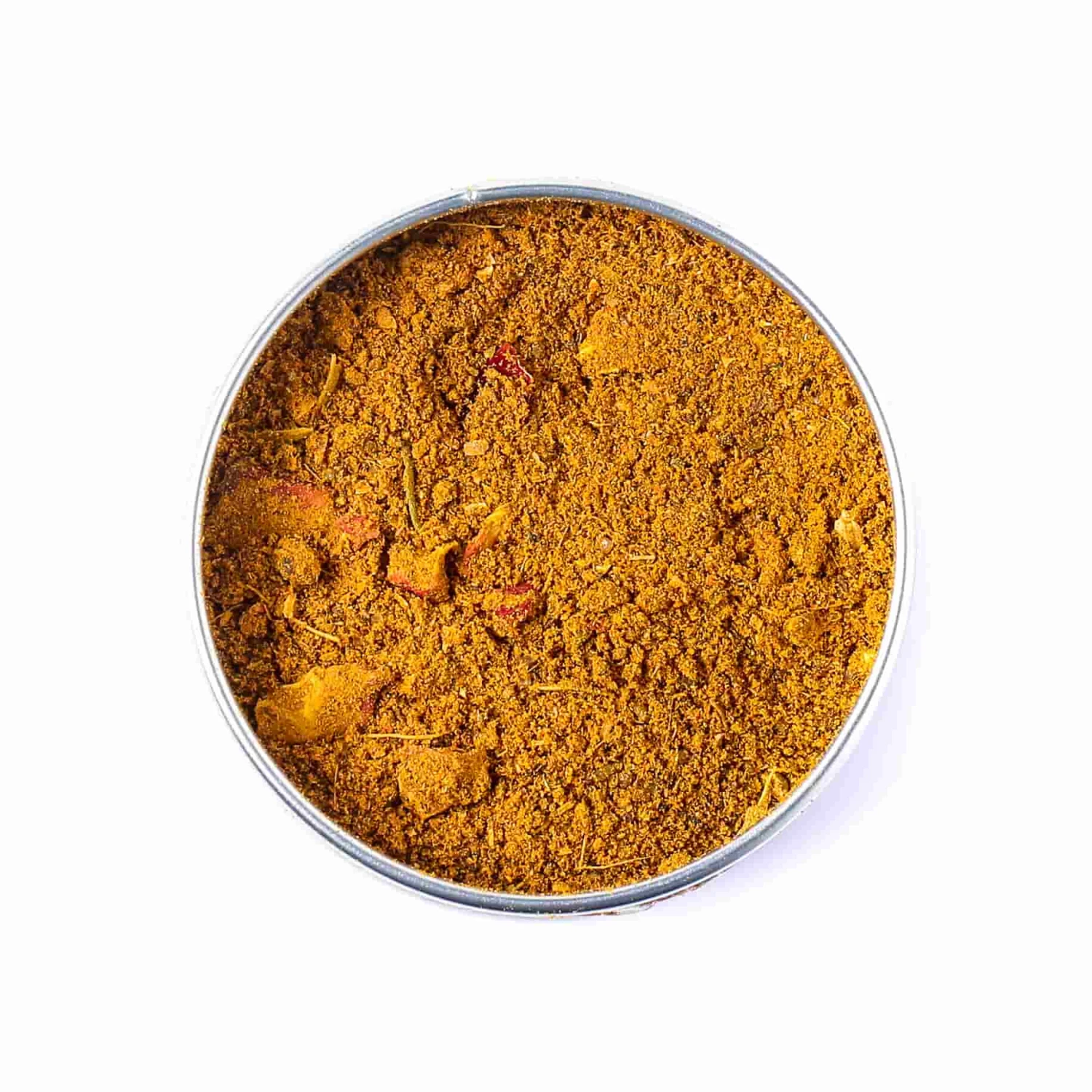 Ingredients: Turmeric, coriander, cumin, black pepper, ginger, cinnamon, clove, green cardamom, allspice, brown sugar, paprika, nutmeg, rose petal.