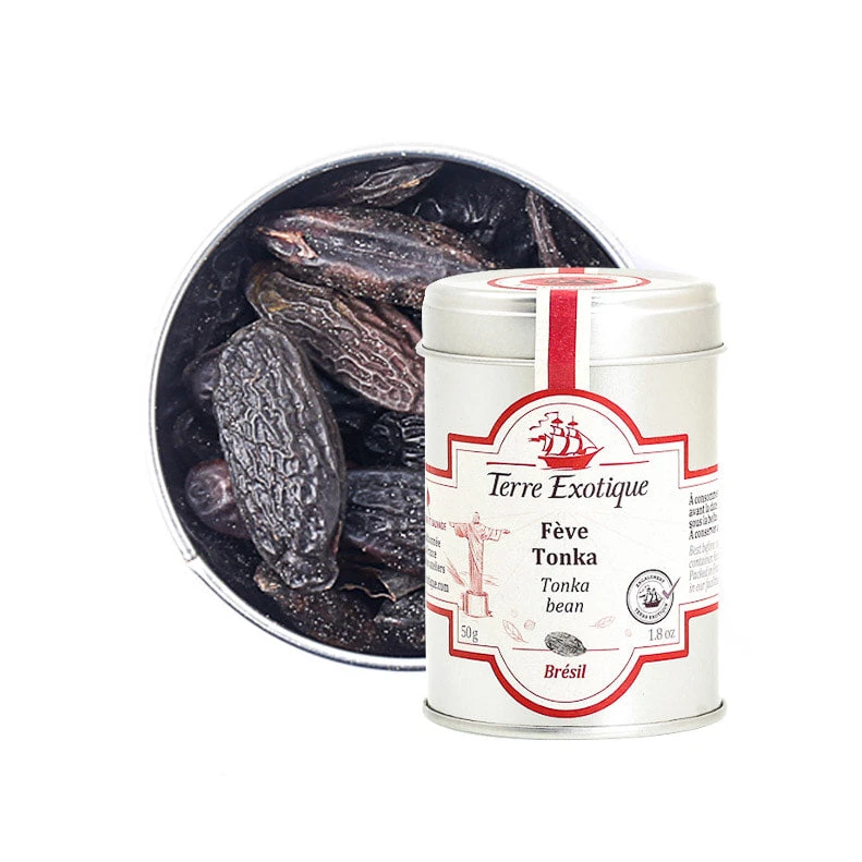 Terre Exotique’s tonka beans bring complex flavours of vanilla, black cherry, almond and tobacco to sweet and savoury dishes. In Guyana, tonka beans are referred to as ‘the lucky bean’ – in order to make a wish, you must hold the small bean in your left hand before throwing it into the river.