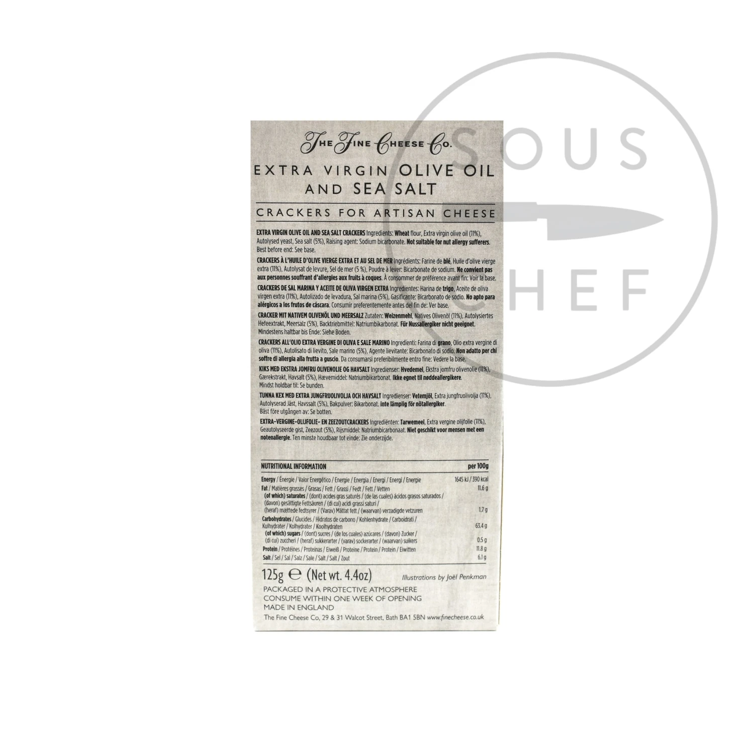Ingredients: Wheat flour, extra virgin olive oil (11%), autolysed yeast, sea salt (5%), raising agent: sodium bicarbonate.Â