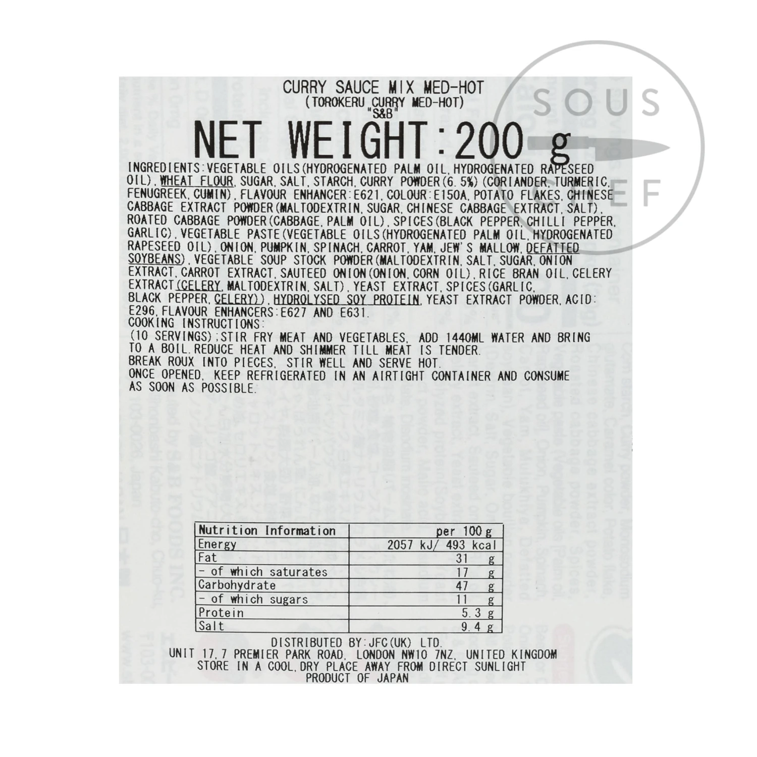 S & B torokeru curry lets you make a classic medium-hot Japanese curry with just a few ingredients – and it only takes about half an hour! S & B is one of the most popular Japanese curry brands. The torokeru medium-hot curry is a flavourful blend of spices with a warming kick of chilli.