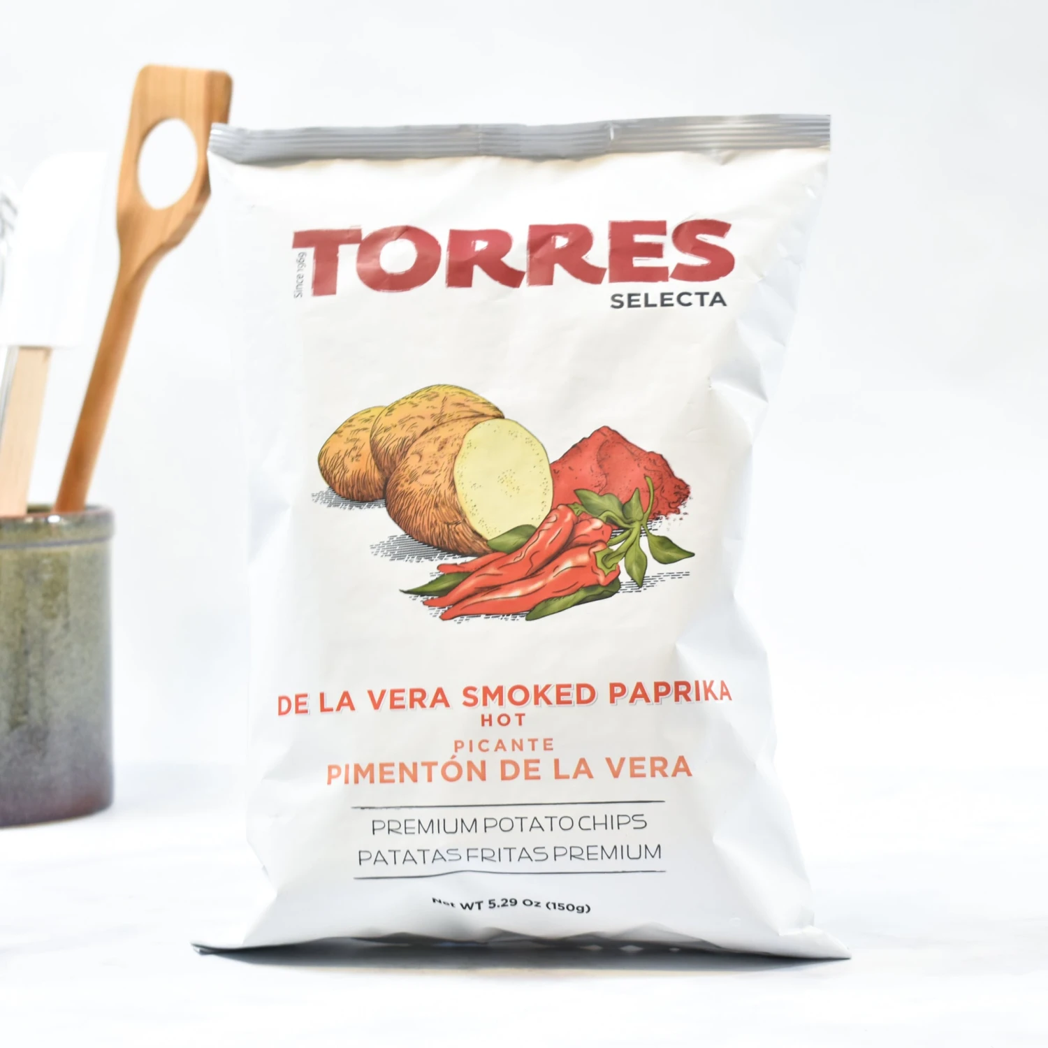 Torres smoked paprika crisps are just what you want with a cool glass of beer or lemonade. The crisps are dusted with hot, oak-smoked De la Vera DOP paprika, which has a spicy, smoky kick.