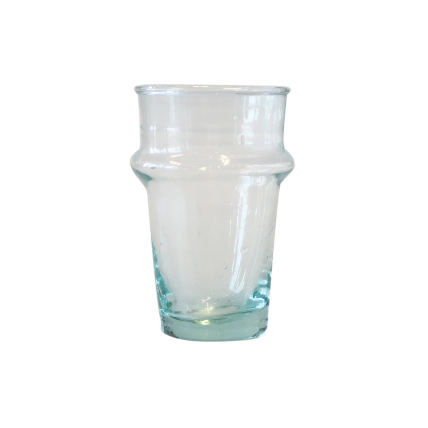 The Moroccan water glass brings a touch of the Moroccan souk into your home. The iconic shape of the glass instantly evokes visions of spice markets and trays of mint tea.