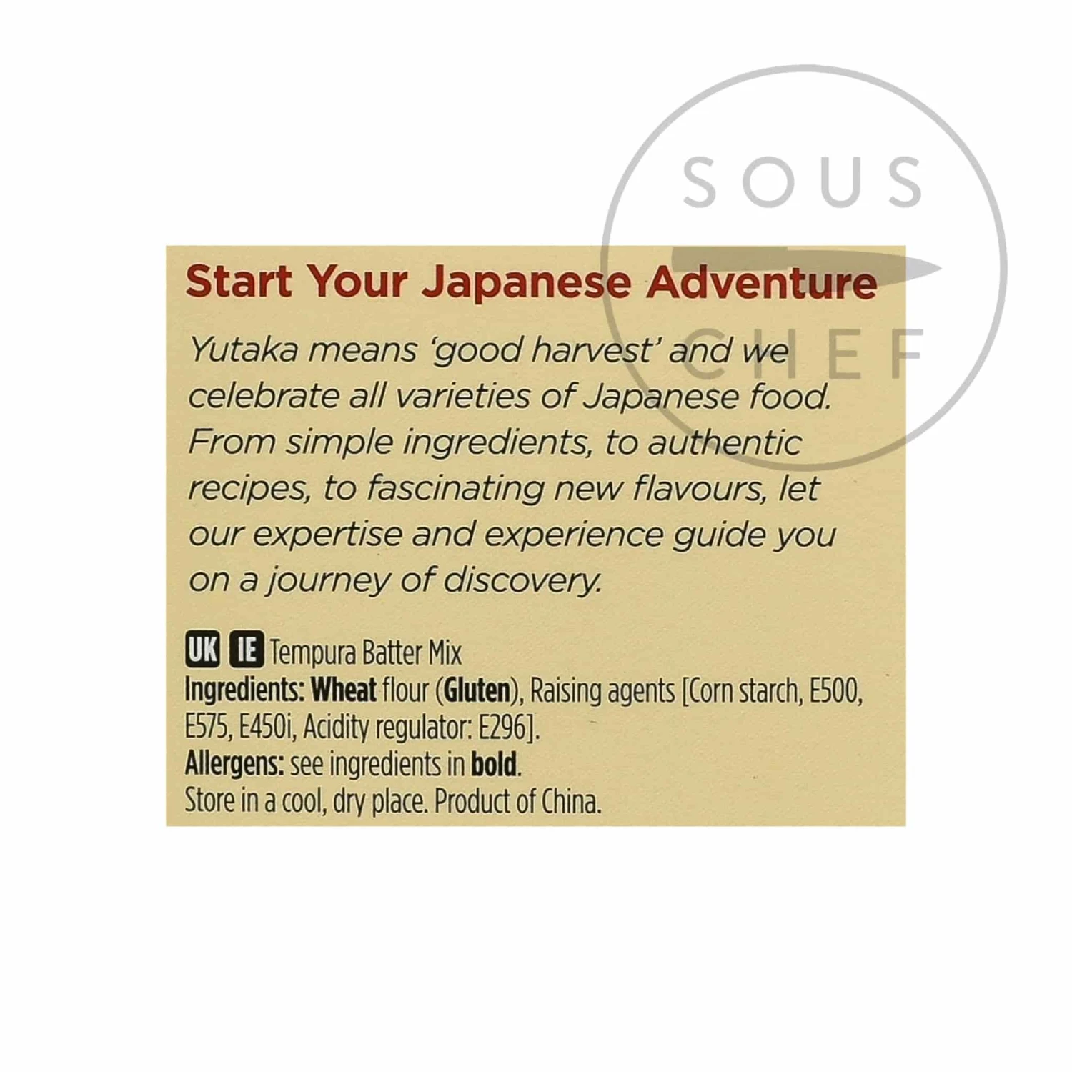 Yutaka tempura batter mix is a quick and simple way to create crispy fried seafood or vegetables. Use it to coat prawns, rings of squid or slices of courgette, then flash fry for fantastic crunch and flavour.
