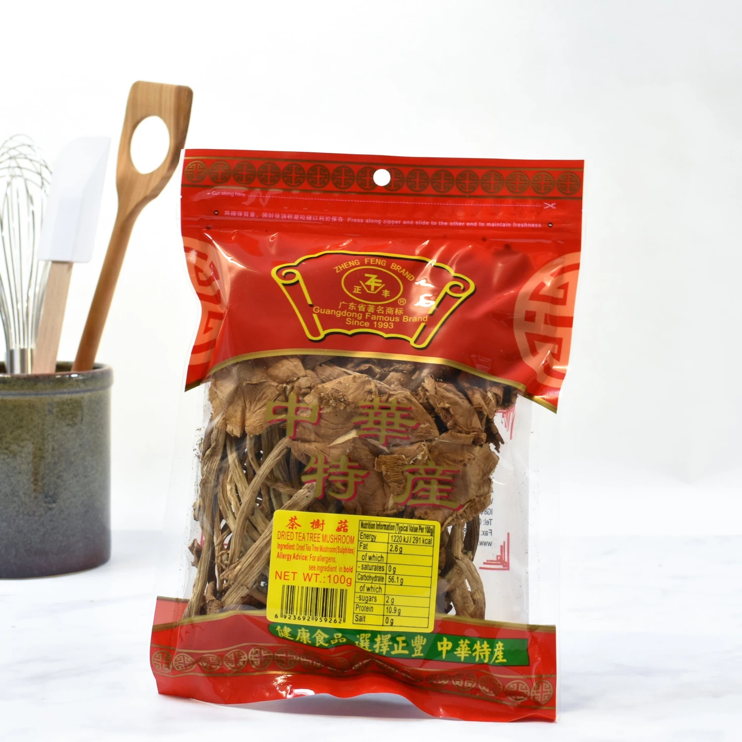 Tea tree mushrooms are one of the star ingredients in the northern Chinese dish, braised chicken with mushrooms. When cooked, the mushrooms have a firm and meaty texture.